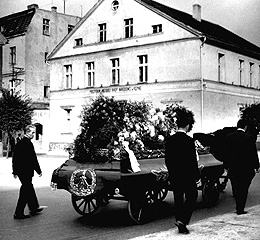 Ja szedłem wraz z mamą bezpośrednio za czarną, ozdobną platformą konną, na której spoczywała trumna, niewidoczna zresztą spod kwietnych wieńców. Za nami szli siostra wraz ze swym mężem i Kasią, następnie czworo wnuków, to jest Grażyna, Janusz, Maciek i Grzesiek. Po nich w kilkudziesięcioosobowej grupie liczni moi wujowie i kuzyni ze swymi rodzinami. Po celebracji księdza i oficjalnych przemówieniach, przy pochylonych sztandarach, trumna z ojcem spoczęła w grobie na cmentarzu kępińskim.